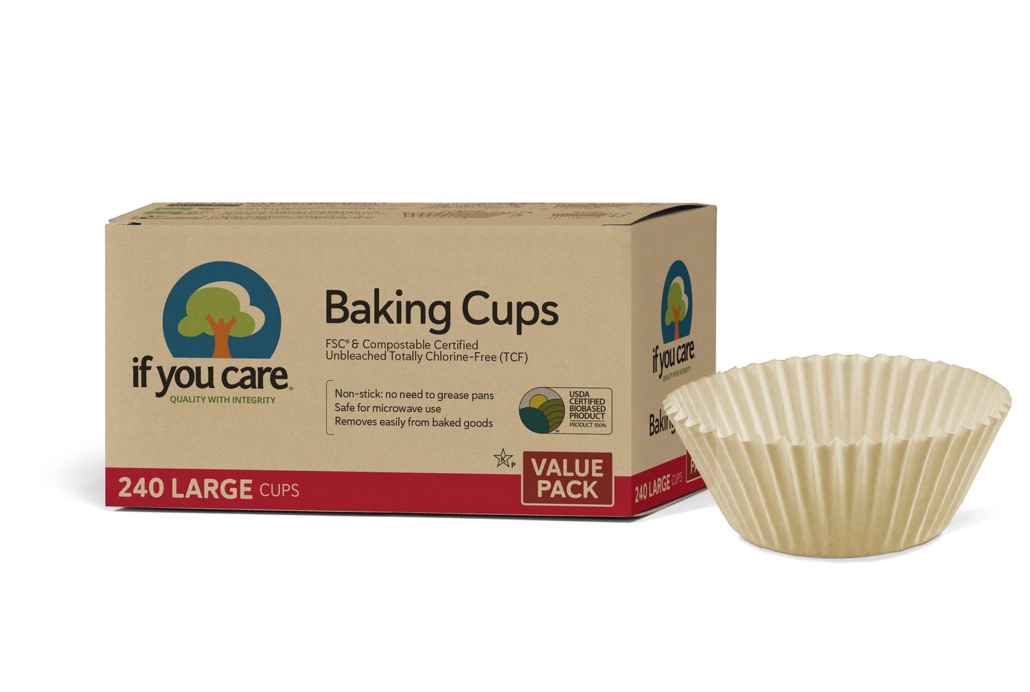 If You Care Baking Cups are available in Large, Jumbo and Mini sizes. Use If You Care Large Baking Cups for standard muffin or cupcake tins.