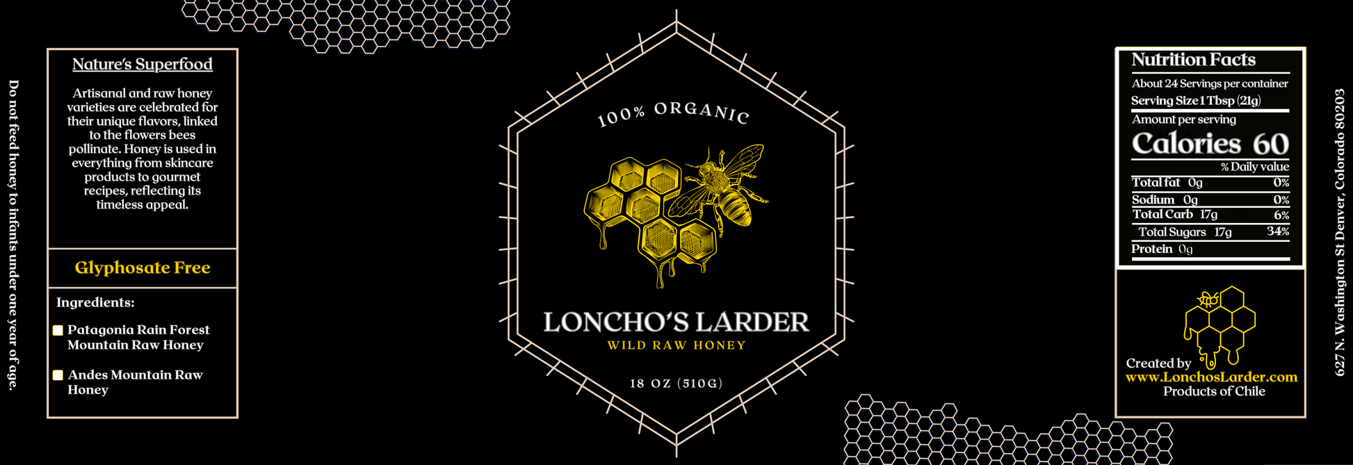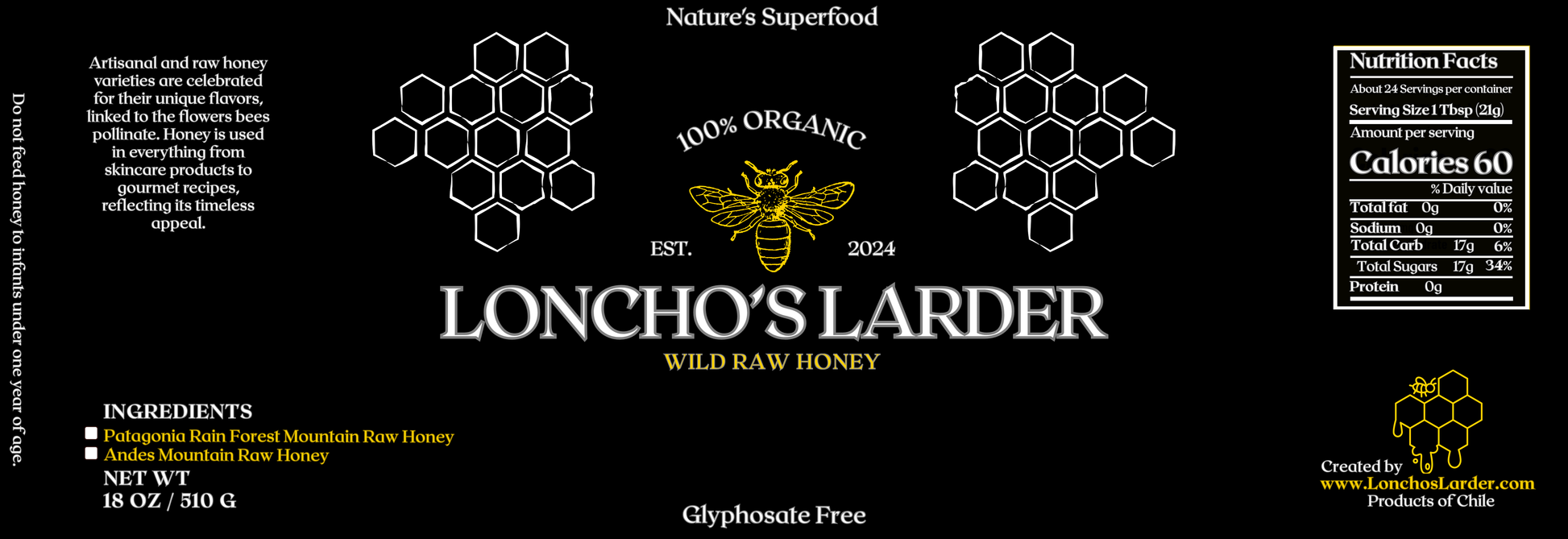Organic Raw Chilean Honeys that come from the Andes Mountain and Patagonia Rain Forest areas of Chile.